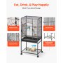 Klatka dla ptaków VEVOR, 625x425x1370 mm, woliera z kutego żelaza z grzędami, tacką i plastikowymi miskami do karmienia, kółkami, budką dla papug, modraszek, nimf i kanarków