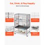 W pełni funkcjonalny: domek dla ptaków wyposażony jest w plastikowe miski na karmę, zapobiegające urazom dziobów. Liczne grzędy i poziome drążki zapewniają dużo miejsca do stania i odpoczynku, a także stabilne oparcie. W zestawie znajduje się również półka do przechowywania karmy dla ptaków i innych akcesoriów.