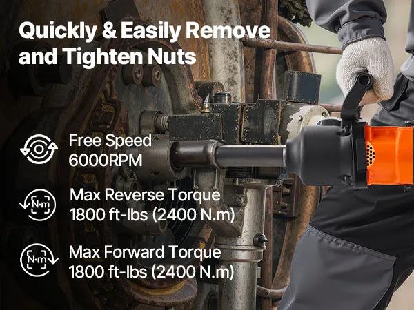 Ten pneumatyczny klucz udarowy zapewnia maksymalny moment obrotowy do 2400 Nm i wysoką prędkość obrotową 6000 obr./min. Bez wysiłku odkręca śruby i nakrętki, dzięki czemu idealnie nadaje się do napraw i konserwacji ciężkich pojazdów, takich jak ciężarówki, przyczepy, autobusy, maszyny rolnicze i urządzenia przemysłowe.