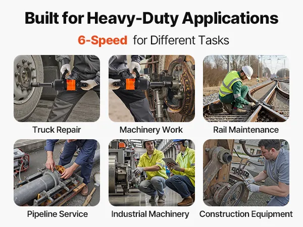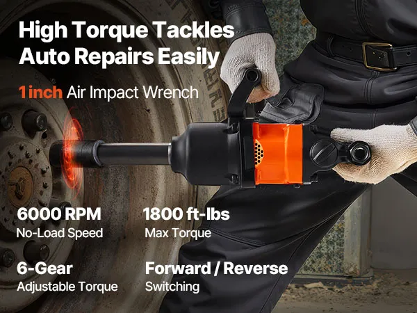 Do wymagających zadań: 1-calowe pneumatyczne klucze udarowe VEVOR zapewniają duży moment obrotowy do odkręcania lub dokręcania śrub i nakrętek. Idealne do napraw i konserwacji ciężkich pojazdów ciężarowych, przyczep, autobusów i maszyn rolniczych.