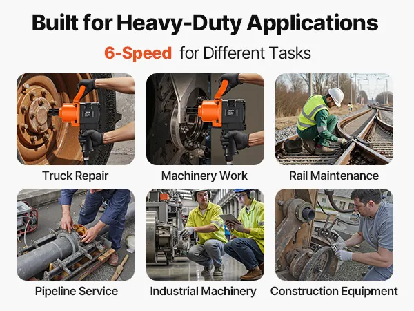 Do wymagających zadań: pneumatyczne klucze udarowe VEVOR o średnicy 1 cala (2,54 cm) zapewniają duży moment obrotowy do odkręcania lub dokręcania śrub i nakrętek. Idealne do napraw i konserwacji ciężkich pojazdów, w tym ciężarówek, przyczep, autobusów i maszyn rolniczych.
