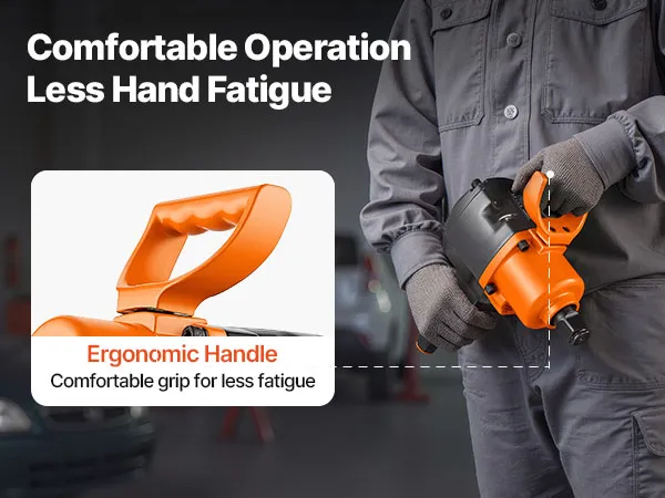 Łatwy w użyciu: Ten klucz udarowy posiada dwa uchwyty i ergonomiczny, antypoślizgowy uchwyt, co zapewnia lepszą kontrolę oraz stabilniejszą i wygodniejszą pracę. Zmniejsza wibracje i zmęczenie dłoni podczas długotrwałego użytkowania.