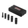 12.7 mm Flip Impact Socket Set for Wheel Nuts: This wheel nut socket set includes four metric and SAE sizes – 17 mm / 3/4 in, 19 mm / 13/16 in, 21 mm / 15/16 in, 22 mm / 7/8 in – plus a 3-inch (76.2 mm) extension bar. The flip design offers two sizes in one, making tire and brake changes more efficient.