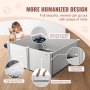 Wysokość boksu porodowego wynosi 61 cm, co zapobiega wyskakiwaniu suczek, gdy wszystkie panele są na swoim miejscu. Zapięcia na rzepy mocują maty do rogów. Panele łączące się ze sobą posiadają wypukłe nacięcia, które zapewniają ścisłe dopasowanie bez luzowania.