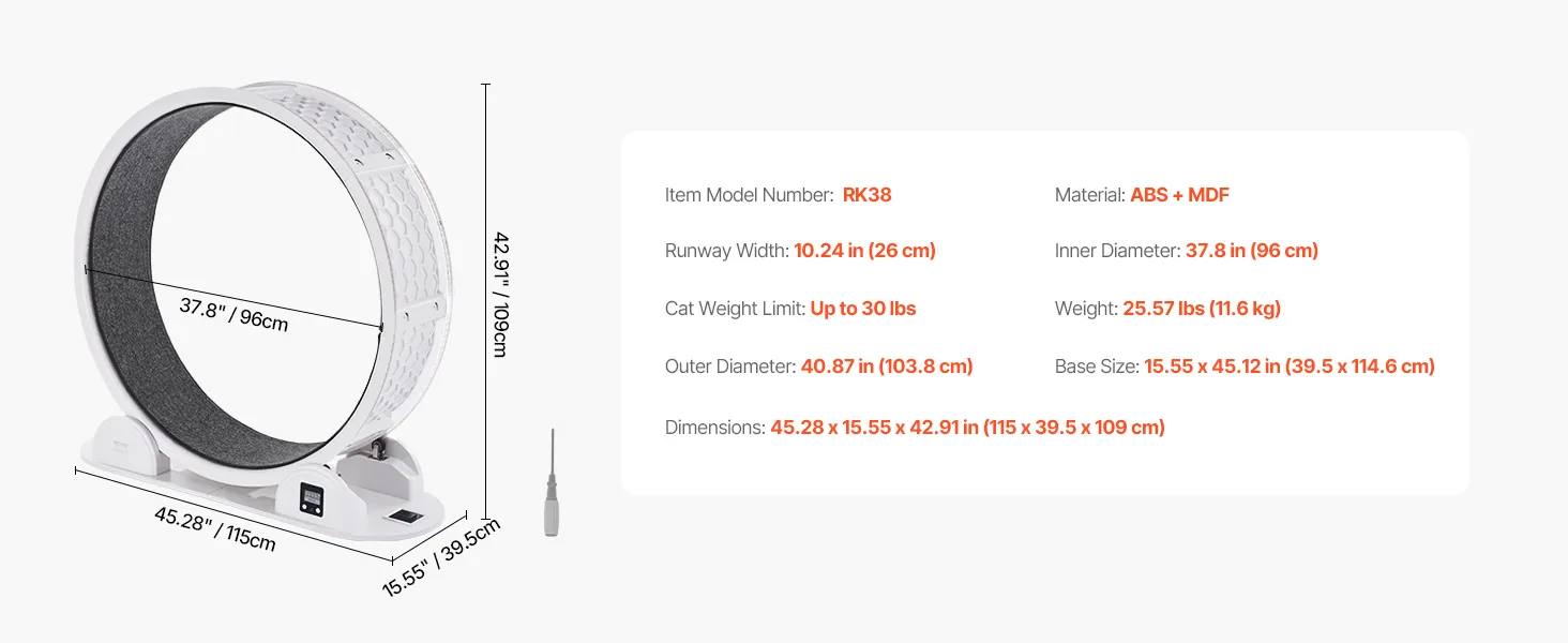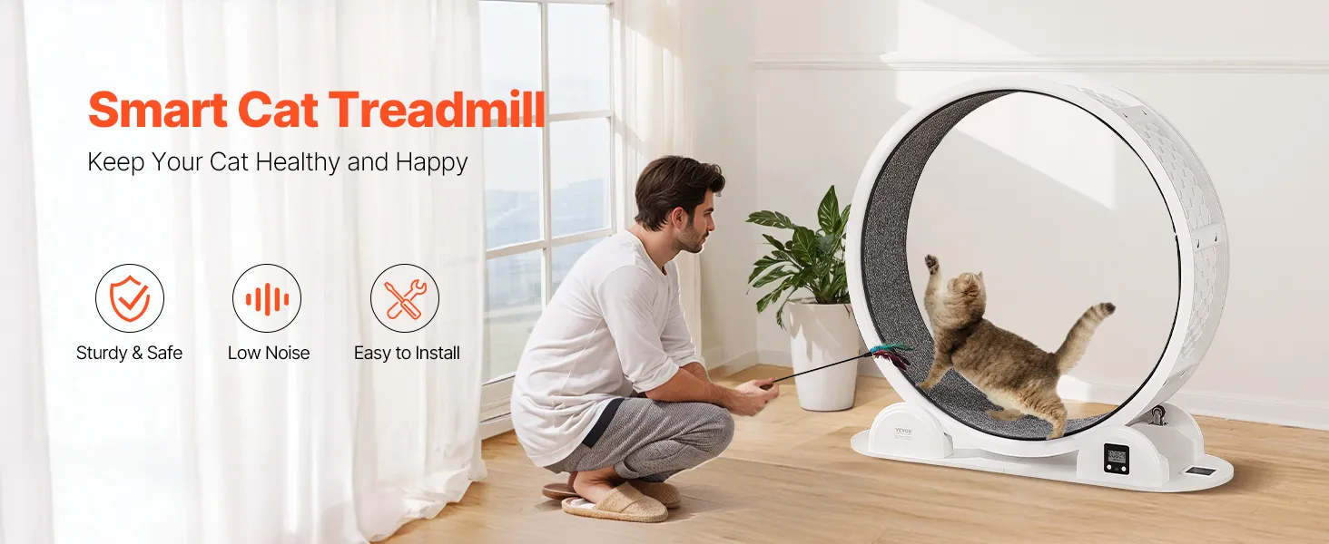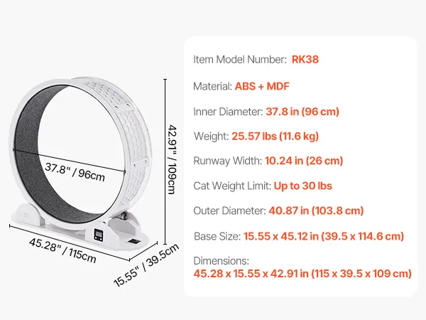 Kołowrotek dla kota VEVOR, 115 x 39,5 x 109 cm, kołowrotek z hamulcem i bieżnią, bieżnia dla kotów domowych o wadze poniżej 13,6 kg, urządzenie do tresury kotów dla zdrowia i kondycji zwierząt