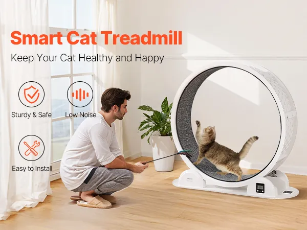 Ta inteligentna bieżnia dla kotów jest wykonana z wytrzymałego plastiku i wyposażona w ciche koła. Wyposażona jest w inteligentny krokomierz, który pozwala śledzić postępy w czasie rzeczywistym. Jej przestronna konstrukcja jest odpowiednia dla kotów każdej wielkości.