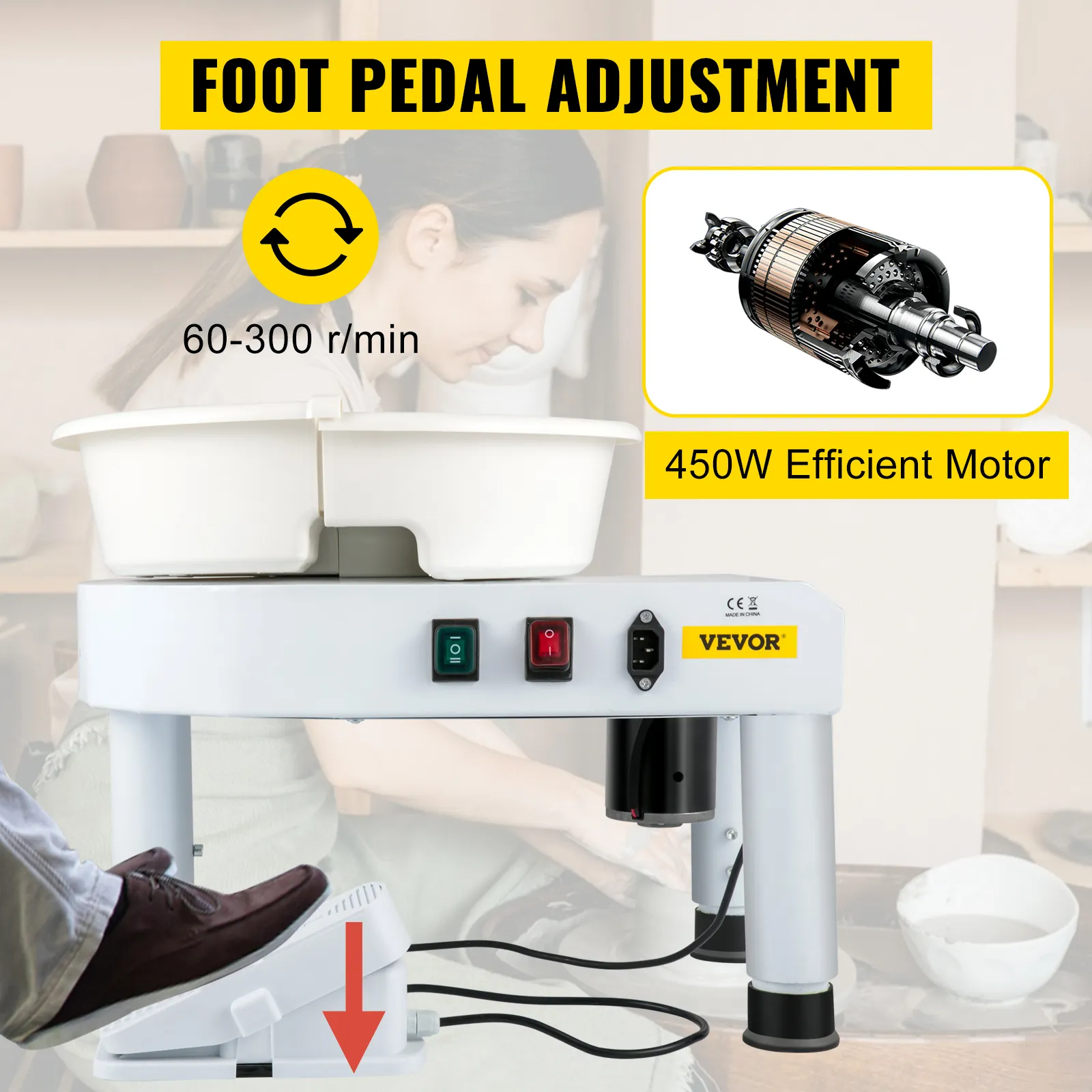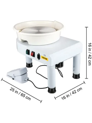 Koło garncarskie VEVOR wyposażone jest w wyjmowaną misę na wodę oraz stół obrotowy o średnicy 14 cali / 35 cm wykonany z wysokiej jakości stopu aluminium, który można obracać w dwóch kierunkach. Blat stołu można łatwo podnieść lub obniżyć dzięki solidnej podstawie. Mocny silnik o mocy 450 W zapewnia płynną i cichą pracę koła garncarskiego, co szczególnie nadaje się na lekcje szkolne, warsztaty garncarskie, majsterkowanie itp. Zwiększ swoje umiejętności garncarskie i stwórz arcydzieło ze wspomnieniami spokoju i przejrzystej atmosfery.