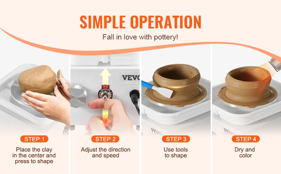 To elektryczne koło garncarskie zostało zaprojektowane z myślą o prostej i przyjaznej obsłudze, odpowiedniej dla użytkowników w każdym wieku. Niezależnie od tego, czy jesteś początkującym, czy doświadczonym garncarzem, koło garncarskie jest łatwe w obsłudze i odpowiednie dla każdego.