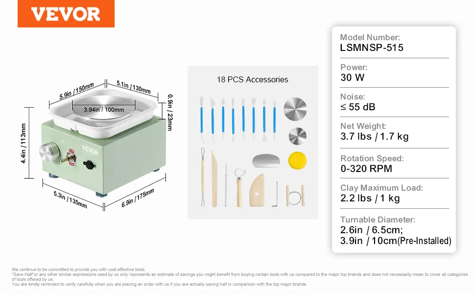 Kompletny zestaw narzędzi: Koło garncarskie zawiera kompletny zestaw narzędzi, w tym 8-częściowy zestaw do rzeźbienia, 8-częściowy plastikowy zestaw narzędzi oraz wodoodporny fartuch. Spełnia wszystkie Twoje potrzeby związane z ceramiką i jest szczególnie odpowiednie dla początkujących.