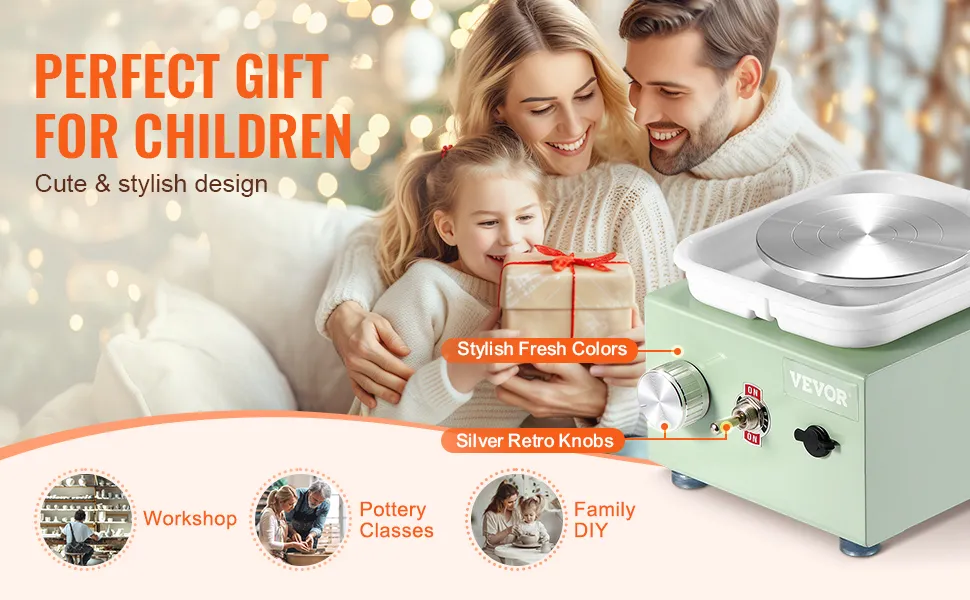 Idealny prezent: Dzięki makaronikowym kolorom i kompaktowemu, uroczemu designowi, to elektryczne koło garncarskie to idealny prezent, który zachęci dzieci do garncarstwa. Zapewnia rodzicom i dzieciom mnóstwo zabawy, a także rozwija ich kreatywność i talent artystyczny.