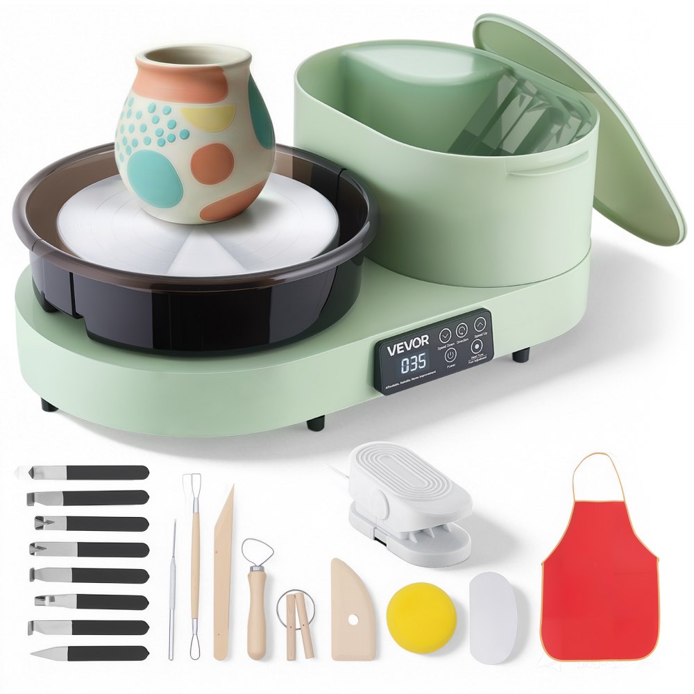 Idealny prezent dla osób kreatywnych: Koło garncarskie jest dostarczane z 8-częściowym zestawem narzędzi ze stali nierdzewnej, 8-częściowym zestawem narzędzi drewnianych oraz fartuchem – idealne dla początkujących. Przemyślany prezent dla par, rodzin i przyjaciół, umożliwiający twórczą radość i wspólne doświadczenia.