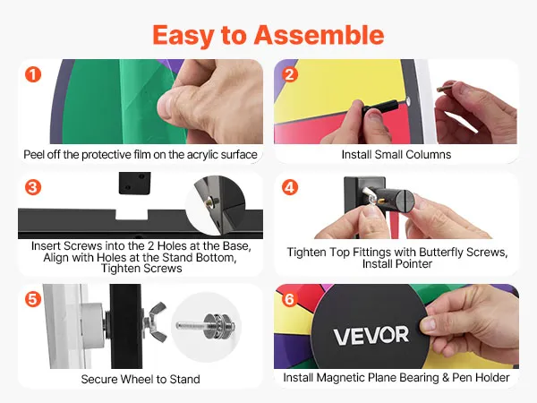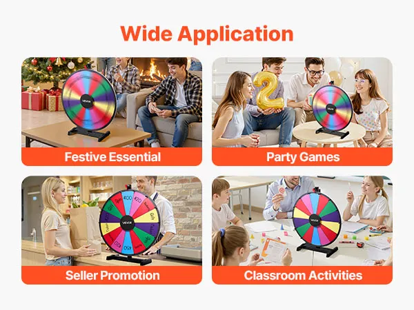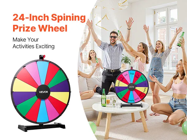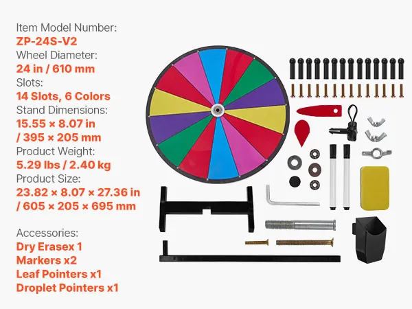 Koło Fortuny VEVOR (61 cm) 14 slotów Koło Fortuny ze stojakiem, ruletka do gier loteryjnych z gąbką do tablicy i 2 markerami, 6 kolorów, kręcące się koło nagród, idealne na imprezy, puby, targi