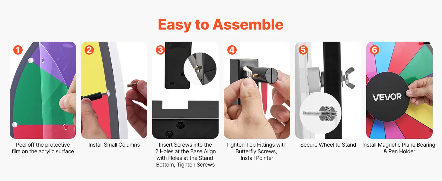 Łatwy montaż: W zestawie znajdują się wszystkie niezbędne części i akcesoria, co pozwala na szybki i bezproblemowy montaż. Nie są wymagane żadne dodatkowe narzędzia. Przygotuj się do zakręcenia kołem i niech zabawa się rozpocznie.