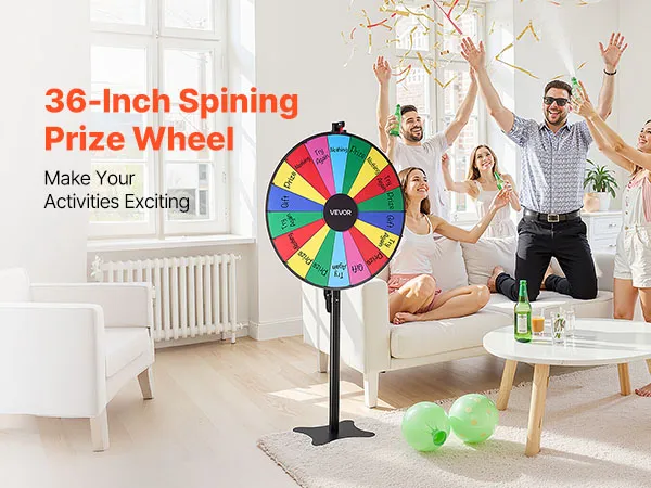 Koło Fortuny VEVOR (914 mm) 18-slotowe Koło Fortuny ze stojakiem, regulowana wysokość, ruletka do gier loteryjnych z gąbką do tablicy i 2 markerami, 6 kolorów, idealne na imprezy, puby, targi