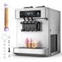 VEVOR Komercyjna maszyna do lodów miękkich 20-28 l/h, maszyna do lodów 2200 W, komercyjna maszyna do lodów z 3 smakami i 2 pojemnikami o pojemności 6 litrów, funkcją wstępnego chłodzenia i ostrzegania o niskim poziomie mieszanki