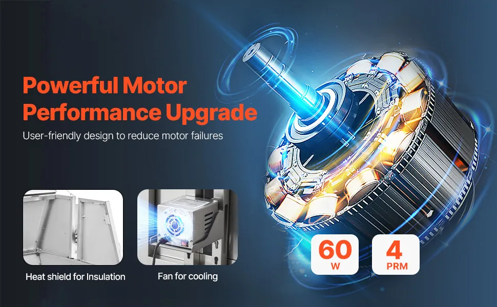 Wyposażona jest w mocny silnik o mocy 60 W, który bez wysiłku obraca wrzeciono z prędkością 4 obr./min. Płyta termoizolacyjna i wentylator zapewniają doskonałą izolację, chłodzenie i łatwość użytkowania.
