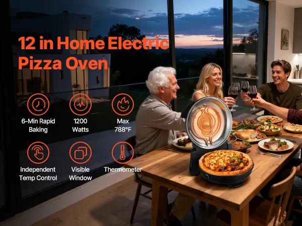 Nie musisz włączać piekarnika ani długo czekać – dzięki temu piecowi do pizzy możesz szybko i łatwo przygotować i cieszyć się chrupiącą, pyszną pizzą w domu, oszczędzając czas i wysiłek.
