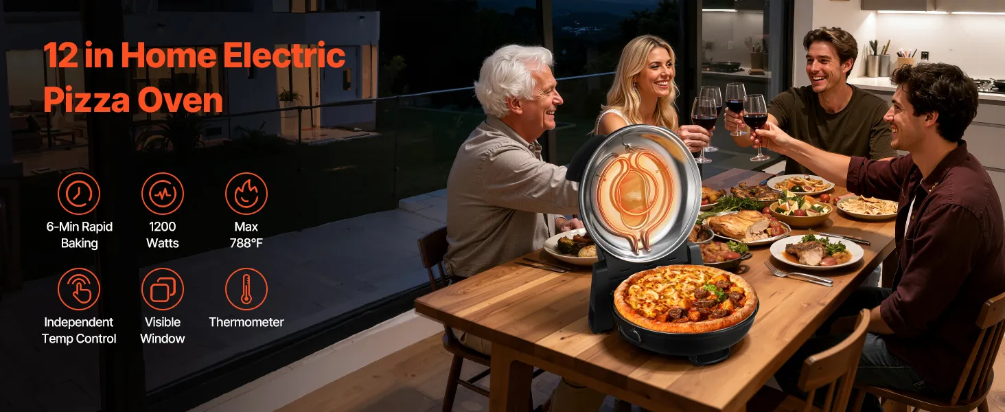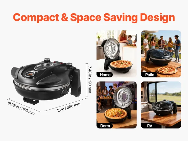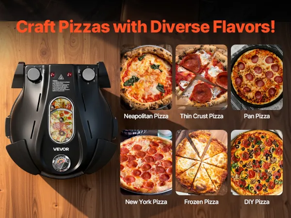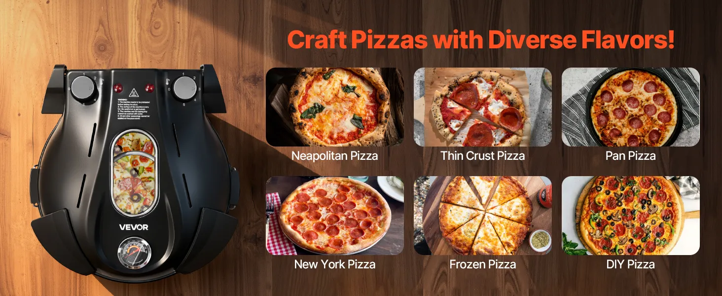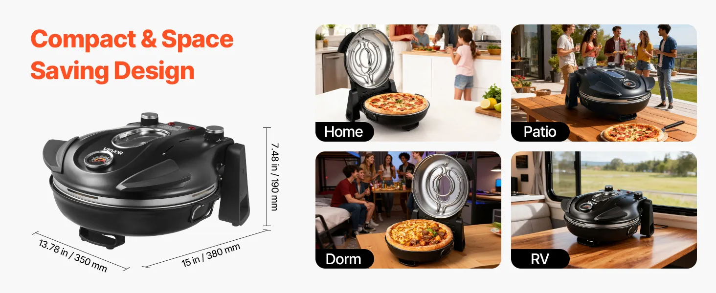 Świetny wybór: Kompaktowy, przenośny i łatwy w obsłudze. Ten piec do pizzy można postawić na blacie lub zabrać ze sobą, aby piec w domu i na zewnątrz. Niezależnie od tego, czy do użytku osobistego, czy do dzielenia się z innymi miłośnikami gotowania, to idealny wybór dla miłośników jedzenia.