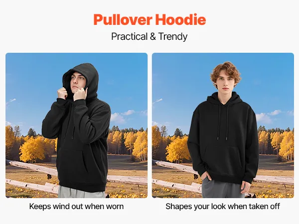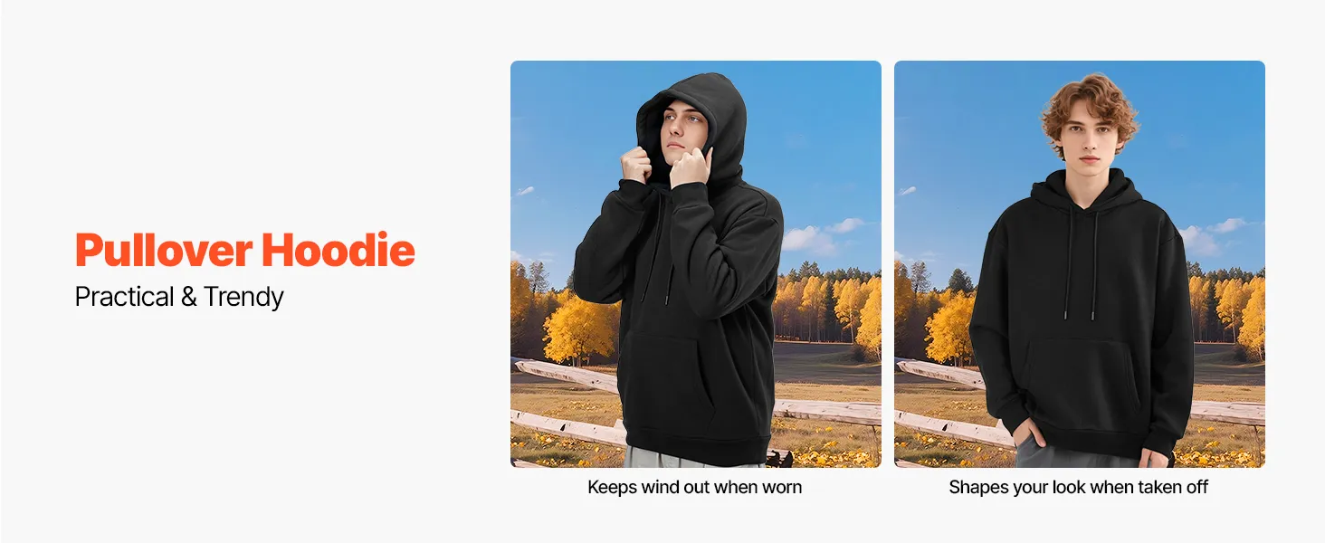 Bluza z kapturem męska VEVOR, rozmiar 3XL, polar, długi rękaw, podstawowy model, ciepła i przyjazna dla skóry, praktyczna i modna, bluza z dużą kieszenią na jesień i zimę, czarna