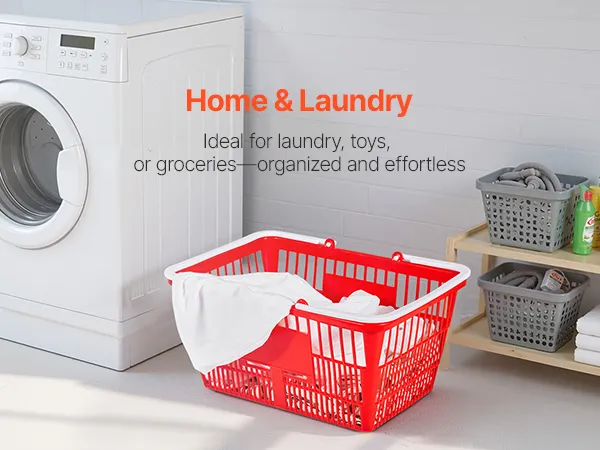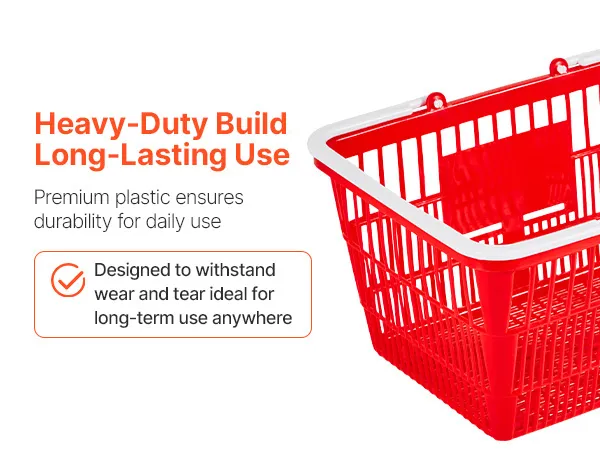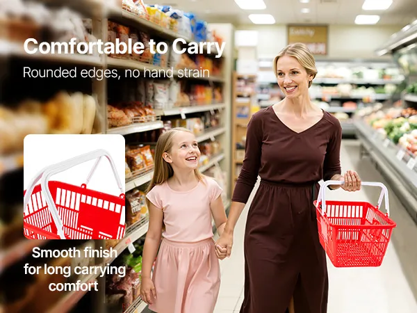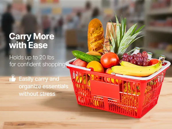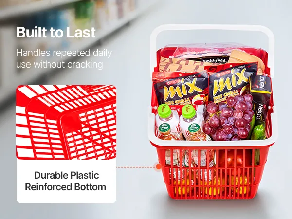 Materiał PE o wysokiej gęstości: Te koszyki zakupowe, wykonane z bezwonnego polietylenu, charakteryzują się gładką powierzchnią, wzmocnioną konstrukcją i długotrwałą wytrzymałością. Ich solidna konstrukcja jest odporna na pęknięcia i wytrzymuje ciężar do 9,07 kg.