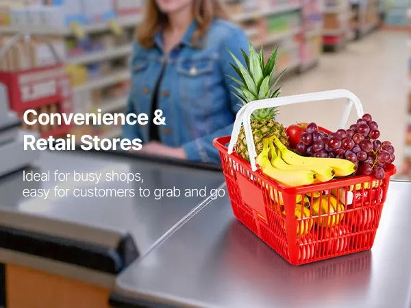 Szerokie zastosowanie: Nasze koszyki zakupowe idealnie sprawdzają się w supermarketach, sklepach całodobowych, księgarniach i centrach handlowych. Są praktyczne do noszenia artykułów spożywczych, owoców, książek lub przedmiotów codziennego użytku, umożliwiając klientom wygodne robienie zakupów i noszenie ich.