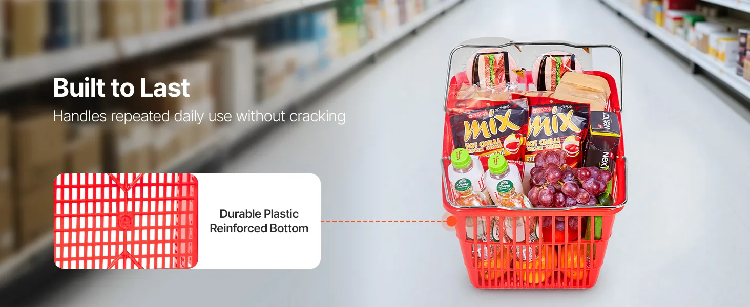 Wszechstronne zastosowanie: Nasze kosze sprzedażowe idealnie nadają się do supermarketów, centrów handlowych, księgarni i kiosków. Dzięki solidnej konstrukcji i dużej nośności, Twoje towary pozostaną bezpiecznie przechowywane, niezależnie od tego, czy robisz zakupy, czy przechowujesz inne przedmioty.