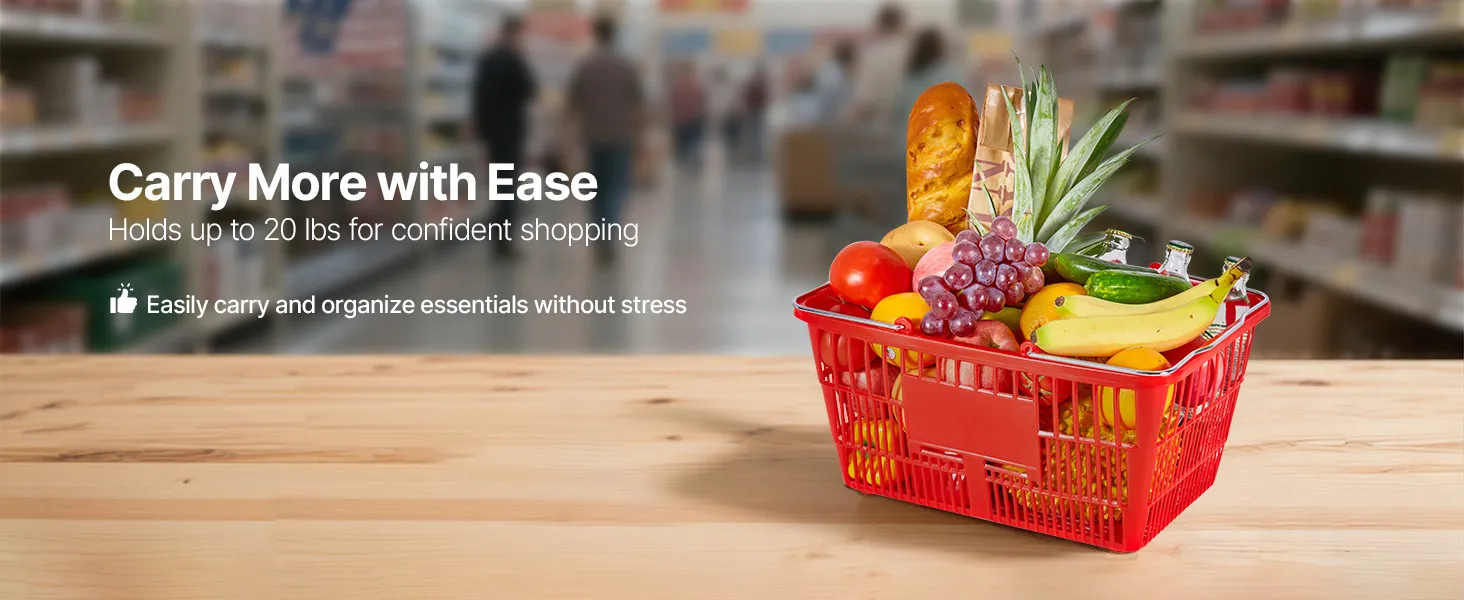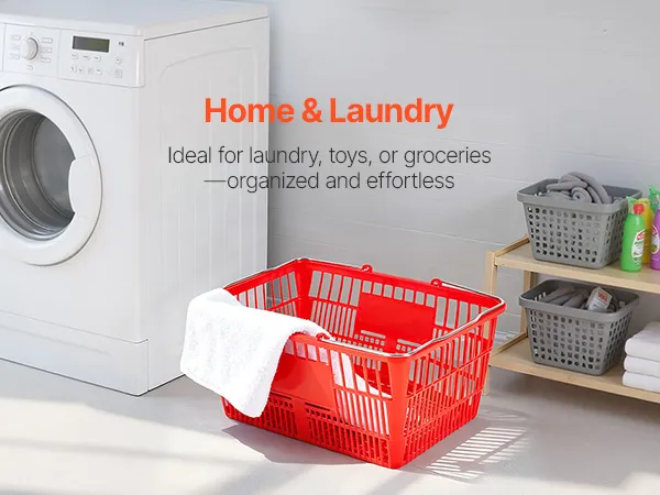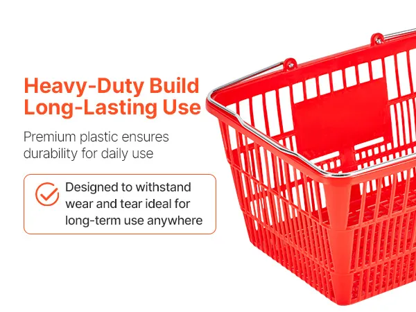 Wysokiej jakości materiał PE: Te koszyki z uchwytami są wykonane z wytrzymałego i trwałego tworzywa PE, dzięki czemu idealnie nadają się do codziennego użytku. Gładka powierzchnia chroni zakupy, a wzmocniona podstawa zapewnia dodatkową stabilność. Koszyki są wystarczająco wytrzymałe, aby unieść do 9 kg bez ryzyka złamania.