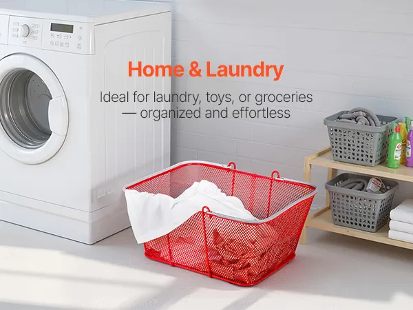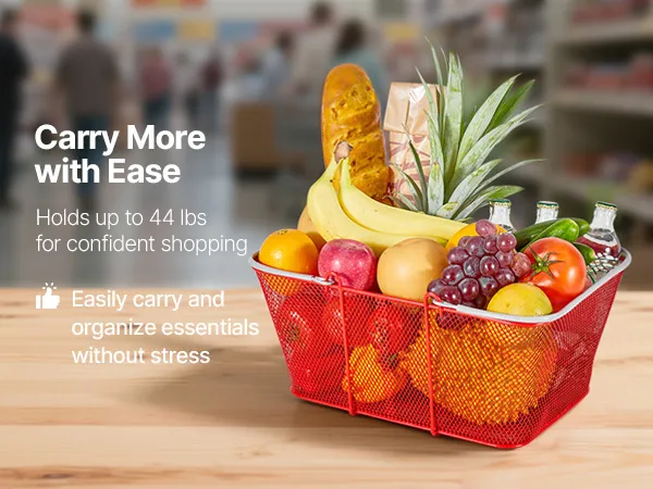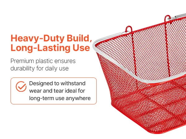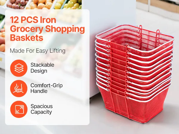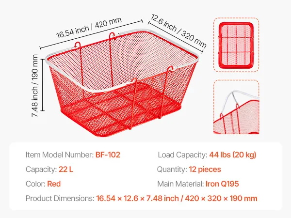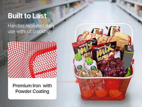 Odporne na rdzę i wytrzymałe: te koszyki zakupowe wykonane z ocynkowanego żelaza ze wzmocnionymi listwami podstawy zapewniają maksymalną stabilność, trwałość i odporność na zużycie. Każdy koszyk wytrzymuje obciążenie do 20 kg i idealnie nadaje się do sklepów detalicznych lub użytku domowego.