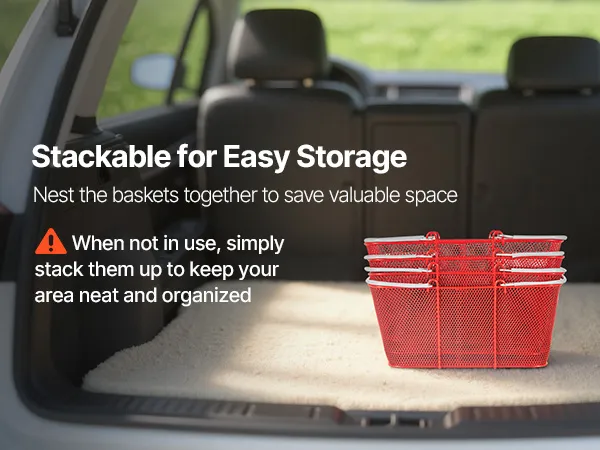 Możliwość układania w stosy dla oszczędności miejsca: Wytrzymałe stalowe uchwyty z gumowymi nakładkami zapewniają pewny i wygodny chwyt. Gdy nie są używane, nasze koszyki zakupowe z uchwytami można układać w stosy w pionie, co ułatwia przechowywanie i organizację, dzięki czemu są przenośne i praktyczne.