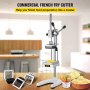- Komercyjna krajalnica do frytek ma korpus ze stopu aluminium, ostrza ze stali nierdzewnej i trwałą podstawę z żeliwa. W zestawie cztery ostrza o następujących rozmiarach cięcia: 1/2", 3/8", 1/4" (12,7, 9,5, 6,3 mm) oraz strugarka 8-klinowa. Dzięki obrotowym uchwytom, uchwytowi i podstawie w kształcie litery U z antypoślizgowymi nóżkami maszyna jest bezpieczna i antypoślizgowa podczas pracy. Krajalnica do warzyw VEVOR pomaga przygotować warzywa w sposób bardziej pracochłonny i wydajny.
