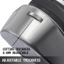 Grubość cięcia można regulować w zakresie od 0 do 8 mm, regulując górną śrubę w celu spełnienia różnych potrzeb. Po ustaleniu grubości zablokuj ostrze bocznymi śrubami.