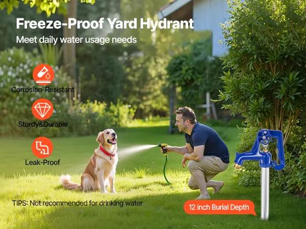 Zapewnij ciągłe zaopatrzenie w wodę: mrozoodporny hydrant ogrodowy VEVOR ma długość całkowitą 980 mm i głębokość zakopania 304,8 mm, co skutecznie chroni rury przed zamarzaniem. Idealny do nawadniania ogrodów, mycia samochodów, podlewania upraw rolnych i pielęgnacji trawników (niezalecany do wody pitnej).