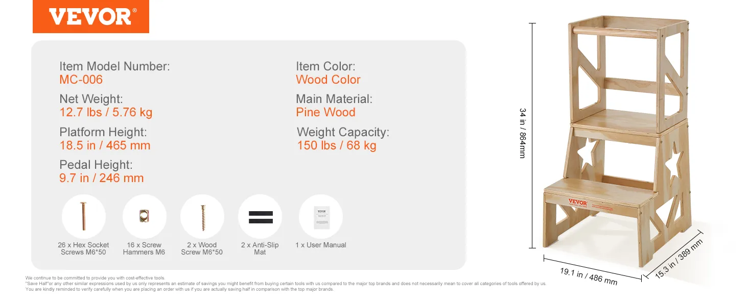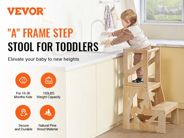 Konstrukcja ułatwia dziecku dostęp do blatu kuchennego. Pozwala mu uczestniczyć w zajęciach i pomaga zwiększyć jego niezależność. Wysokość stołka jest idealna dla maluchów, dzięki czemu zadania w kuchni są dostępne. Twoje dziecko może teraz łatwo umyć ręce lub pomóc w gotowaniu. Ten stołek jest przeznaczony do udźwigu do 150 funtów, co gwarantuje trwałość i niezawodność. Ten stołek jest doskonałym uzupełnieniem Twojej kuchni, wspomagając wzrost i rozwój Twojego dziecka.