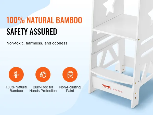 Bezpieczeństwo jest najwyższym priorytetem dla rodziców. Schodek Tower Step Stool VEVOR został zaprojektowany z myślą o bezpieczeństwie. Posiada solidną konstrukcję z bambusa, która wytrzymuje ciężar do 350 funtów. Szeroka podstawa zapewnia doskonałą stabilność, zmniejszając ryzyko przewrócenia. Barierka bezpieczeństwa to kluczowa cecha, zapewniająca najbezpieczniejszą opcję dla maluchów. Ta cecha zapewnia, że maluchy pozostają bezpieczne podczas korzystania ze stołka. Barierka zapobiega przypadkowym upadkom, dzięki czemu jest bezpieczny dla dzieci. Dzięki temu jest to niezawodny wybór dla mamy i taty. Konstrukcja stołka zapewnia, że Twoje dziecko może bezpiecznie sięgać po wyższe powierzchnie. Są idealne do zajęć w kuchni, łazience lub w każdym innym miejscu, gdzie wymagana jest dodatkowa wysokość. Funkcje bezpieczeństwa tego stołka dają rodzicom spokój ducha, wiedząc, że ich dzieci są bezpieczne.