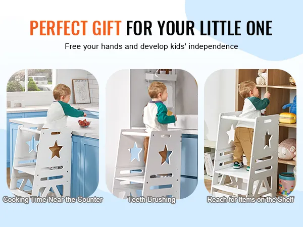 Pomaga zwiększyć niezależność Twojego malucha. Pozwala mu bezpiecznie sięgać wyżej położonych powierzchni, zachęcając je do angażowania się w czynności, których w innym przypadku nie byłoby w stanie wykonać. Funkcje bezpieczeństwa stołka zapewniają, że maluchy mogą eksplorować i uczyć się bez ryzyka. Maluchy mogą próbować takich rzeczy, jak mycie rąk, pomaganie w kuchni lub sięganie po zabawki. Konstrukcja naszego stołka promuje samostanowienie u dzieci, umożliwiając im samodzielne wykonywanie zadań. Pomoże im to stać się pewnymi siebie i rozwinąć ważne umiejętności. Ze względu na cechy zwiększające niezależność jest to cenne narzędzie dla rozwoju Twojego dziecka.