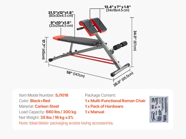 Wielofunkcyjna ławka do ćwiczeń VEVOR do treningu całego ciała, ławka do ćwiczeń hiperekstensyjnych, krzesło rzymskie, regulowany przyrząd do ćwiczeń mięśni brzucha o obciążeniu 300 kg, sprzęt treningowy na siłownię