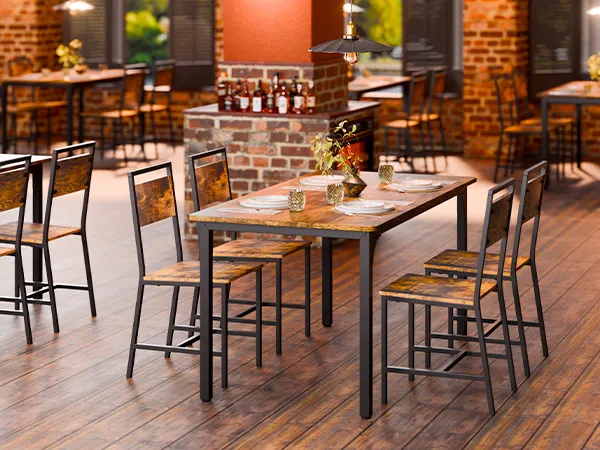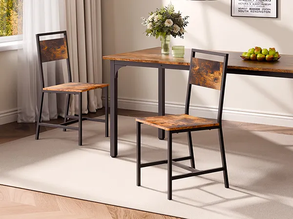 Uniwersalne połączenie stylów: Ten zestaw krzeseł do jadalni łączy w sobie rustykalne ciepło z industrialnym charakterem i urokiem vintage. Doskonale wpasowuje się w rustykalne lofty, kawiarnie w stylu retro lub miejskie apartamenty — to sylwetka, która odmienia przestrzeń.
