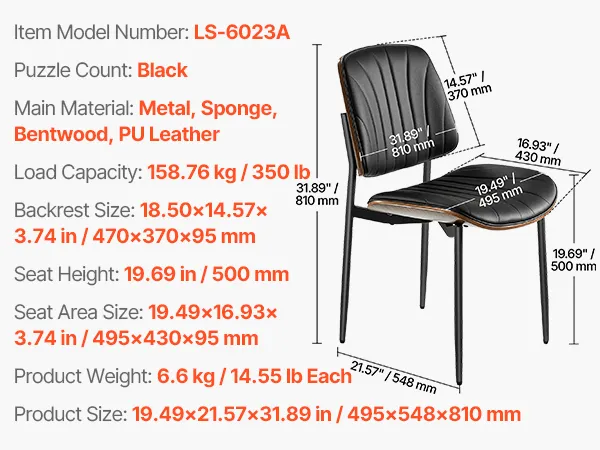 Solidne metalowe nogi: Te solidne krzesła do jadalni ze wzmocnionymi metalowymi nogami wytrzymują obciążenie do 158,76 kg (3350 funtów). Regulowane noski zapobiegają chwianiu się na nierównych podłogach. Te krzesła akcentowe do kuchni i jadalni idealnie nadają się do jadalni, salonów i biur.