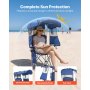 VEVOR Camping Chair with Canopy Shade, Folding Beach Chair with Canopy & Magazine Pocket, 2 Cup Holders, 150 kg Heavy Duty Support, Carry Bags for Outdoor, Camp, Fishing, Tailgates, Deep Blue