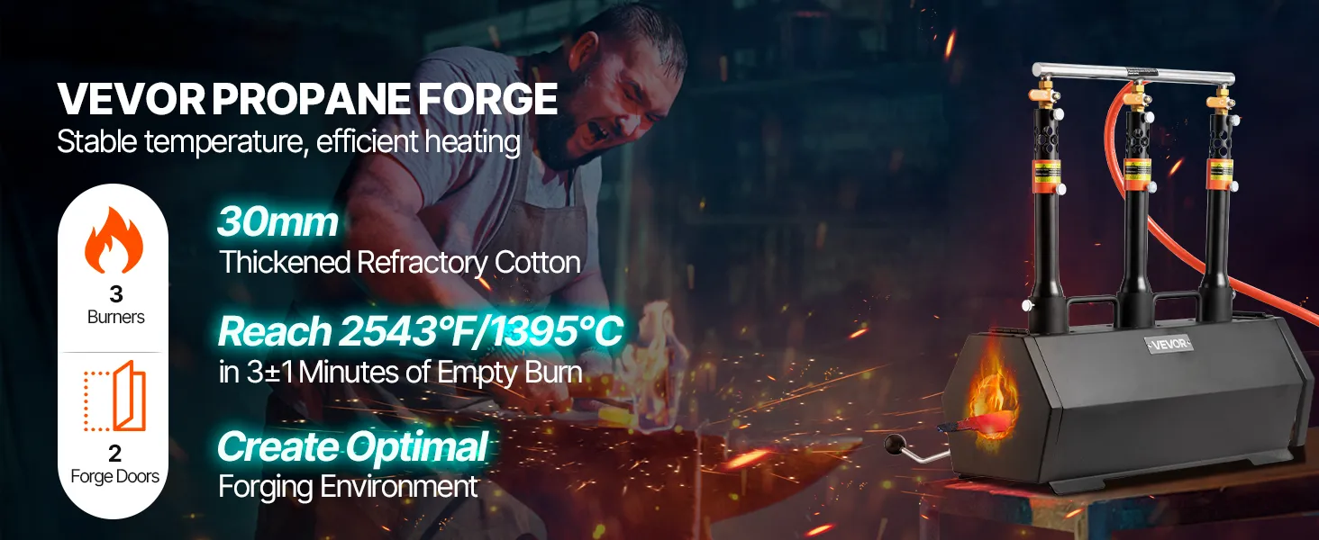 Przenośna kuźnia propanowa VEVOR, piec kowalsko-kowalski z 3 palnikami, 1427°C, do wyrobu noży, kowalstwa, piec sześciokątny o dużej pojemności, narzędzia i wyposażenie do kucia stali walcowanej na zimno