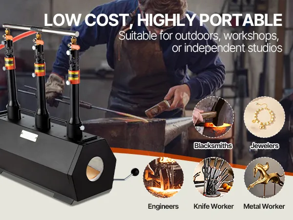 Dzięki wyjątkowej wydajności naszej przenośnej kuźni gazowej zasilanej propanem, bez trudu możesz tworzyć wysokiej jakości narzędzia metalowe lub dzieła sztuki.