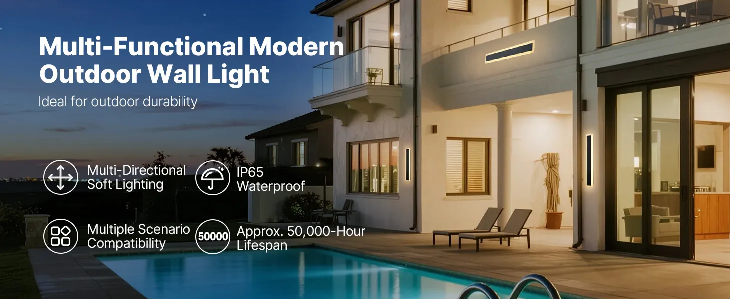 Wodoodporność IP65 i trwałość: Ta zewnętrzna lampa ścienna jest wodoodporna IP65 i oferuje doskonałą szczelność. Jest przystosowana do napięcia AC 90–265 V, a wbudowany wodoodporny sterownik LED zapewnia podwójną ochronę przed zwarciami i przeciążeniami.