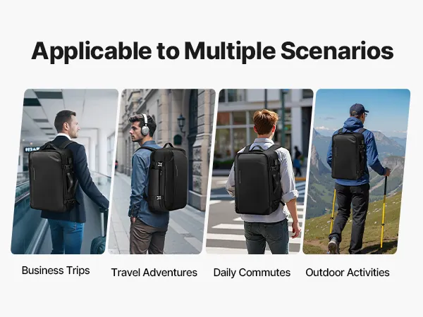 Wiele przegródek i kieszeni: Plecak wyposażony jest w starannie zaprojektowane przegródki, w tym przegrodę na rzeczy suche i mokre, kieszeń na mapę, kieszeń antykradzieżową itp. W naszym próżniowo szczelnym plecaku podróżnym wszystko znajdzie swoje miejsce.