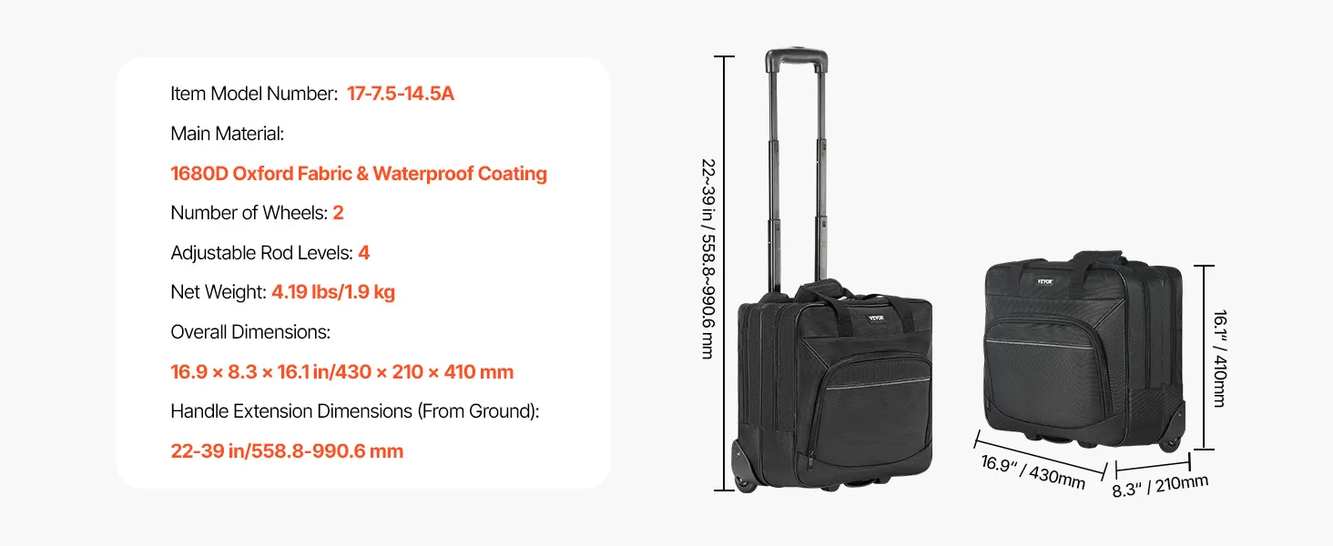 Ta torba na laptopa na kółkach w wersji podręcznej umożliwia łatwy dostęp do ważnych rzeczy podczas lotu, zwiększając Twoją produktywność. Omiń kontrolę bagażu i odbierz go, a znacznie uprościsz swój proces podróży.