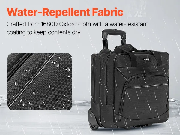 Ta torba na kółkach pomieści laptopy o przekątnej 39,6 cm (15,6 cala) i jest wyposażona w 4-stopniowo regulowaną rączkę teleskopową dla łatwego przenoszenia. Dzięki licznym przegródkom i kieszeni z łatwym dostępem, ważne rzeczy pozostaną uporządkowane. Wykonany jest z wytrzymałej tkaniny Oxford 1680D z powłoką wodoodporną i ochroni Twoje rzeczy przed lekkim deszczem.