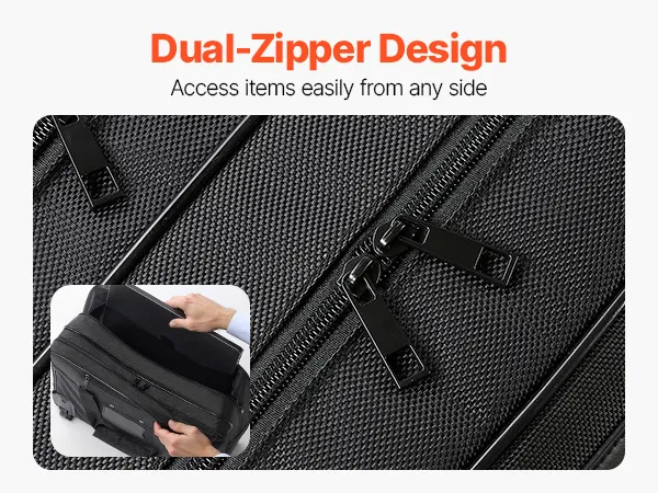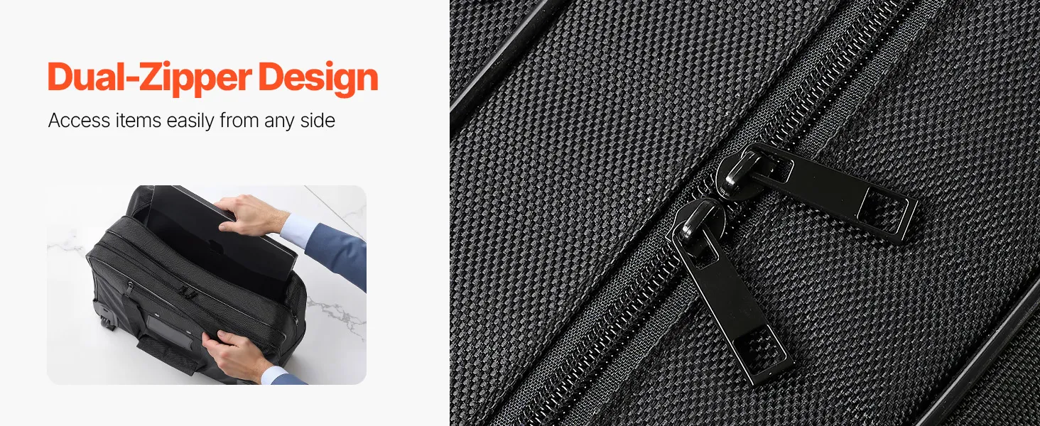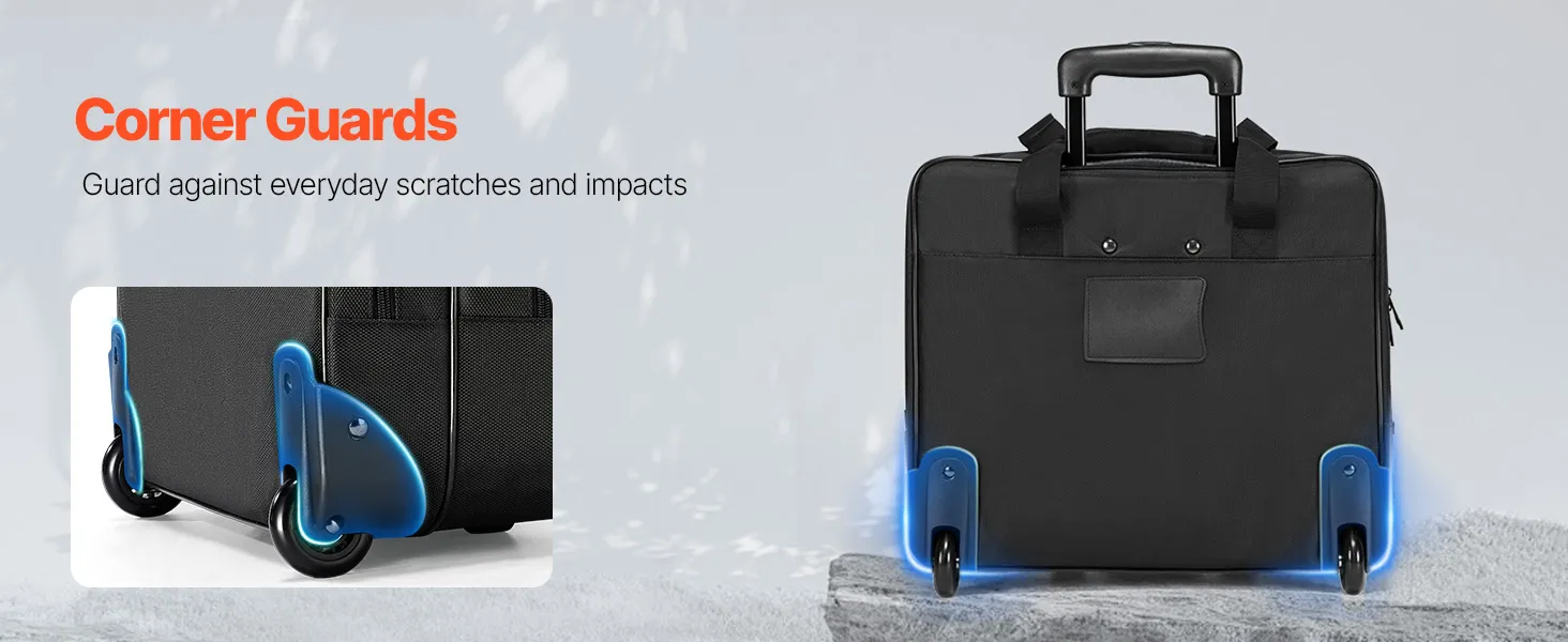Płynny i bezproblemowy ruch: Ta torba robocza na kółkach jest wyposażona w dwa stałe kółka zapewniające lepszą stabilność i umożliwia płynne przesuwanie się po różnych powierzchniach. Niezależnie od tego, czy poruszasz się po terminalu lotniska, czy po ruchliwej ulicy, koła umożliwiają poruszanie się w linii prostej przy minimalnym wysiłku, dzięki czemu wózek jest łatwy w obsłudze.