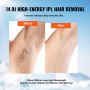 Skuteczne, bezbolesne i bezpieczne: ciesz się delikatnym i wydajnym usuwaniem włosków dzięki ulepszonej technologii IPL firmy VEVOR i utrzymuj zdrową i jedwabiście gładką skórę. Wnika głęboko w skórę, aż do cebulki włosa, skutecznie eliminując melaninę, przerywając cykl wzrostu włosa, chroniąc jednocześnie mieszki włosowe.