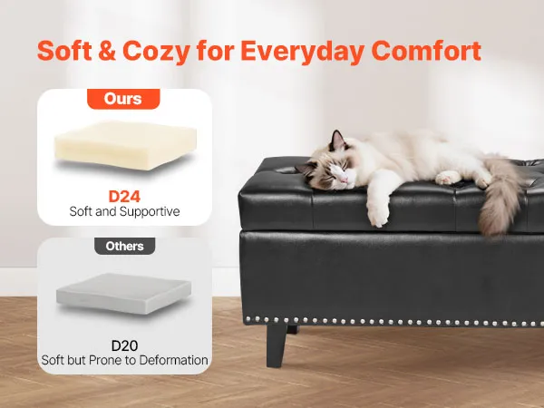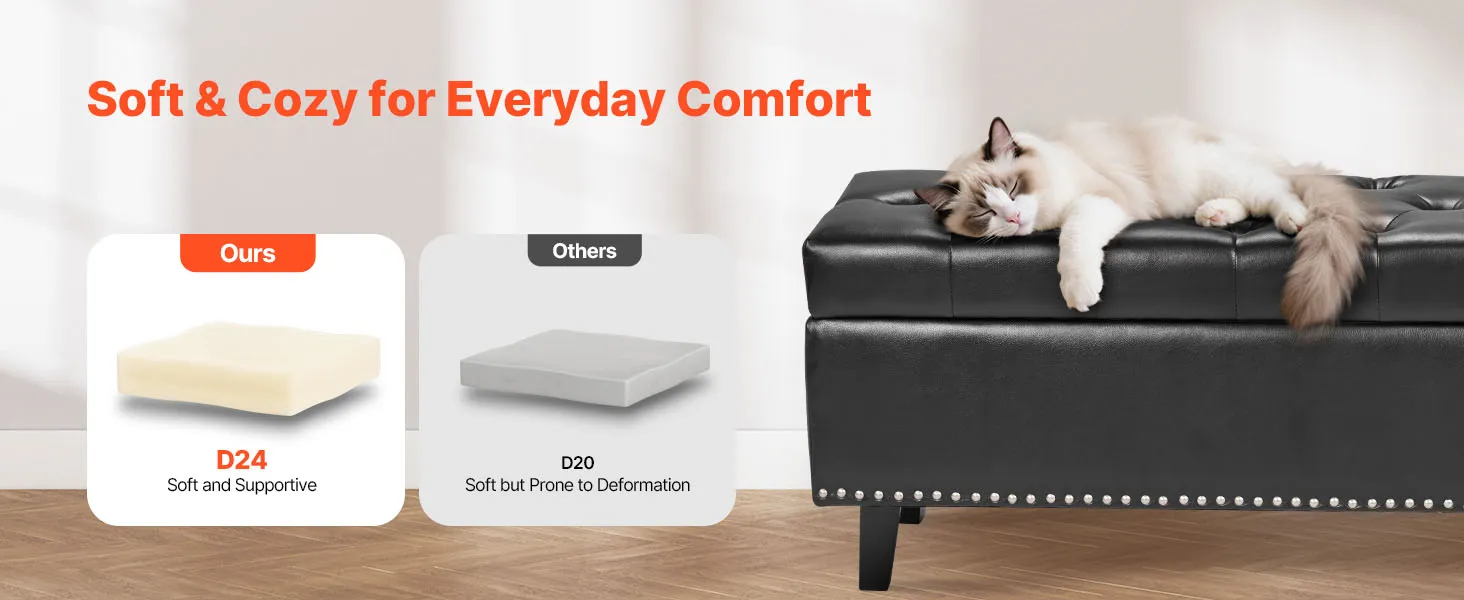 Komfort siedzenia: Poduszka o grubości 50 mm (2 cale) wypełniona jest pianką D24, zapewniającą zrównoważoną miękkość i wsparcie. Idealna do relaksu, zakładania butów lub robienia sobie przerw – odciąża nogi i biodra, zapewniając codzienny komfort.