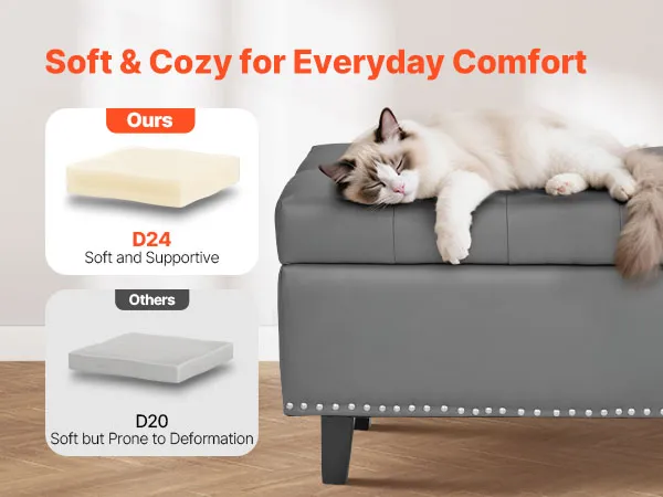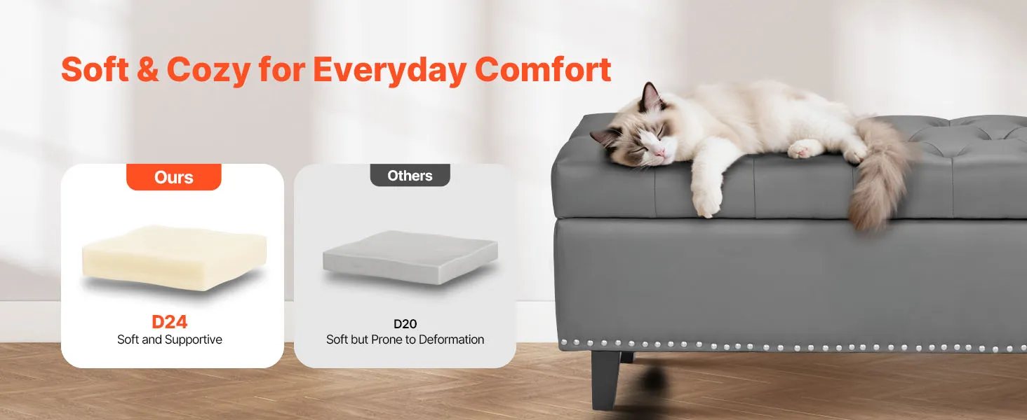 Komfort siedzenia: Poduszka o grubości 50 mm (2 cale) wypełniona jest pianką D24, zapewniającą zrównoważoną miękkość i wsparcie. Idealna do relaksu, zakładania butów lub robienia sobie przerw, odciąża nogi i biodra, zapewniając codzienny komfort.