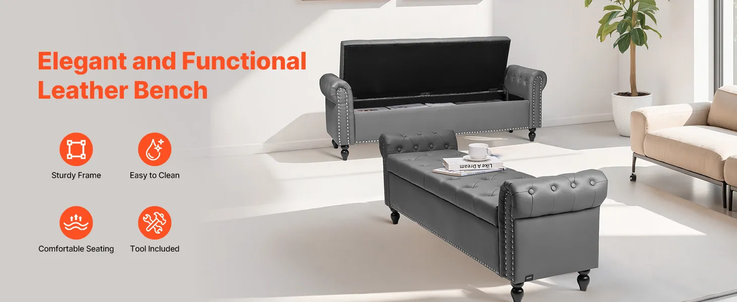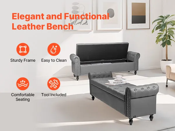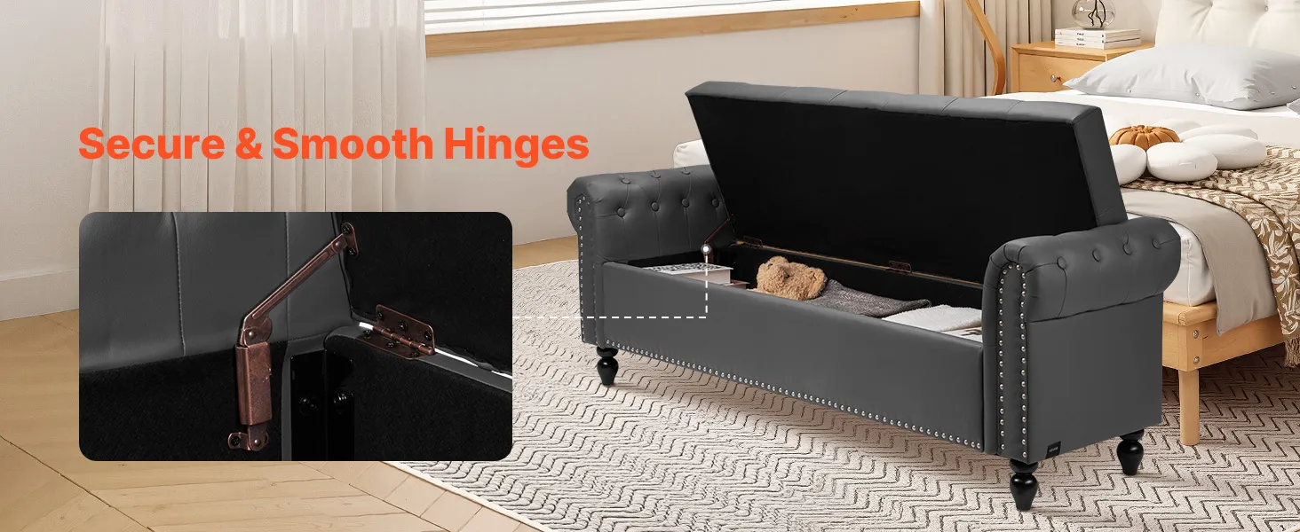 Wyposażona w ukryty schowek, niezawodną nośność i miękki komfort, ta ławka do sypialni wykonana ze skóry PU łączy w sobie piękno i funkcjonalność, dzięki czemu sypialnia staje się bardziej zorganizowana i stylowa.